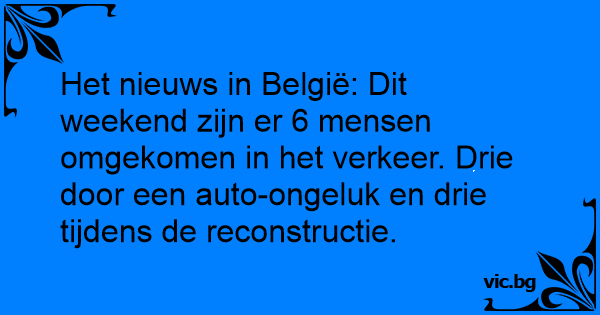 Het nieuws in België: Dit weekend zijn er 6 mensen omgekomen in het verkeer. Drie door een auto-ongeluk en drie tijdens de reconstructie.