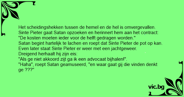 Satan begint hartelijk te lachen en roept dat Sinte Pieter de рот op kan.