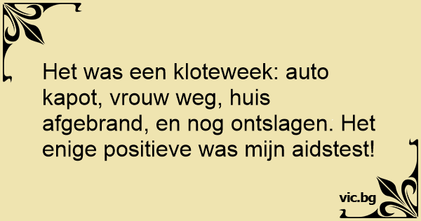 Het was een kloteweek: auto kapot, vrouw weg, huis afgebrand, en nog ontslagen. Het enige positieve was mijn aidstest!
