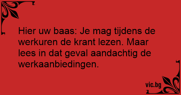 Hier uw baas: Je mag tijdens de werkuren de krant lezen. Maar lees in dat geval aandachtig de werkaanbiedingen.