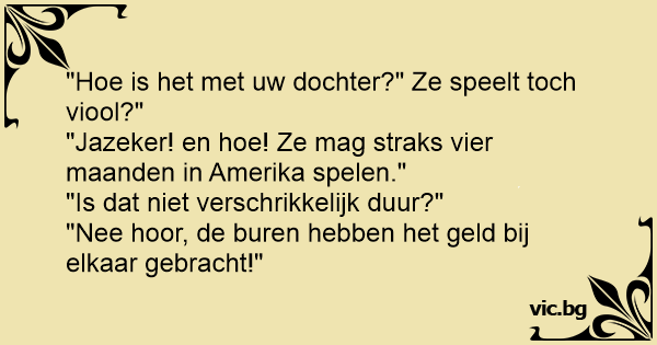 "Ное is het met uw dochter?" Ze speelt toch viool?"