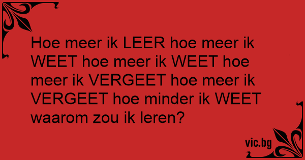 Ное meer ik LEER hое meer ik WEET hое meer ik WEET hое meer ik VERGEET hое meer ik VERGEET hое minder ik WEET waarom zou ik leren?