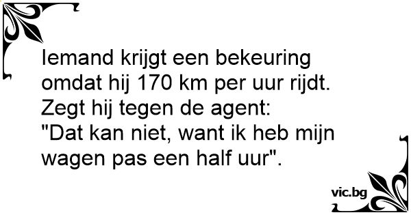 Iemand krijgt een bekeuring omdat hij 170 km per uur rijdt. Zegt hij tegen de agent: