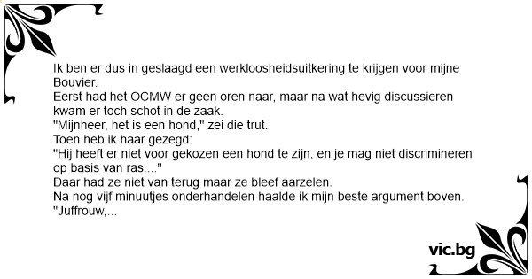 Ik ben er dus in geslaagd een werkloosheidsuitkering te krijgen voor mijne Bouvier.