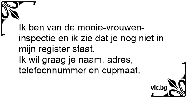Ik ben van de mooie-vrouwen-inspectie en ik zie dat je nog niet in mijn register staat.