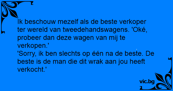'Sorry, ik ben slechts op één na de beste. De beste is de man die dit wrak aan jou heeft verkocht.'