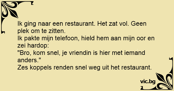 Ik ging naar een restaurant. Het zat vol. Geen plek om te zitten.