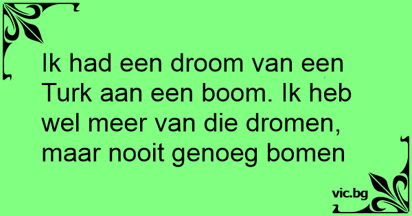 Ik had een droom van een Turk aan een boom. Ik heb wel meer van die dromen, maar nooit genoeg bomen