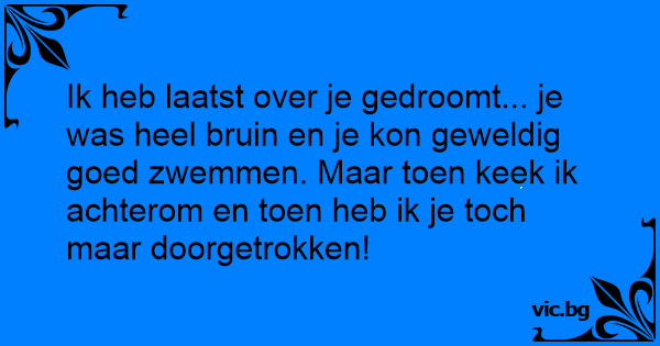 Ik heb laatst over je gedroomt... je was heel bruin en je kon geweldig goed zwemmen. Maar toen keek ik achterom en toen heb ik je toch maar doorgetrokken!