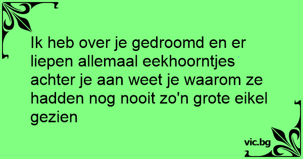 Ik heb over je gedroomd en er liepen allemaal eekhoorntjes achter je aan weet je waarom ze hadden nog nooit zo'n grote еiкеl gezien