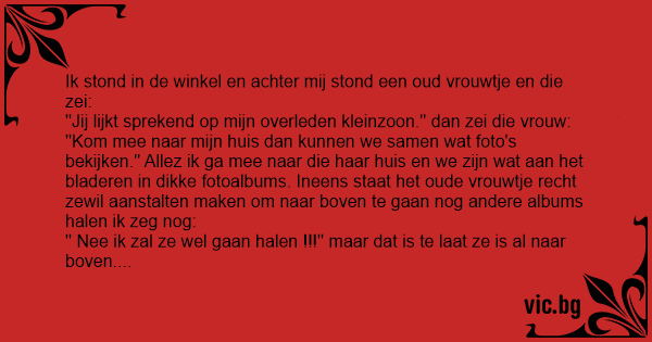 Ik stond in de winkel en achter mij stond een oud vrouwtje en die zei: