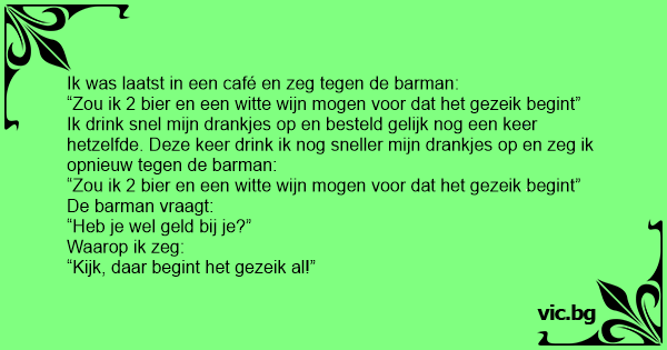 “Zou ik 2 bier en een witte wijn mogen voor dat het gezeik begint”