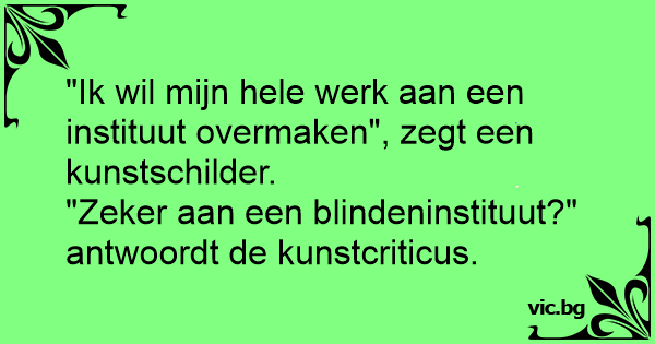 "Zeker aan een blindeninstituut?" antwoordt de kunstcriticus.