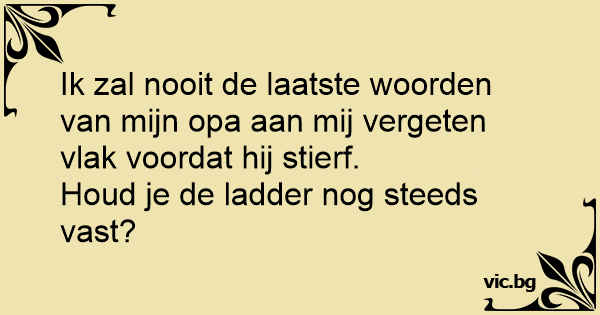 Ik zal nooit de laatste woorden van mijn opa aan mij vergeten vlak voordat hij stierf.