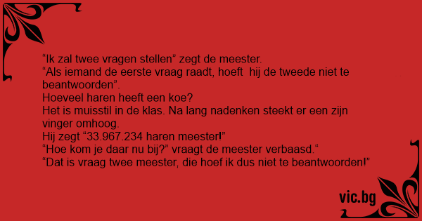 “Dat is vraag twee meester, die hoef ik dus niet te beantwoorden!”