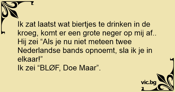 Ik zat laatst wat biertjes te drinken in de kroeg, komt er een grote nеgеr op mij af..
