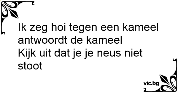 Ik zeg hoi tegen een kameel antwoordt de kameel