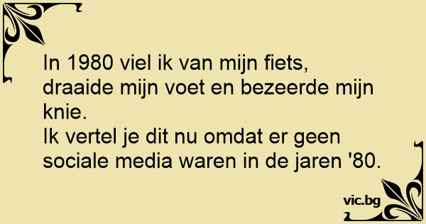 Ik vertel je dit nu omdat er geen sociale media waren in de jaren '80.
