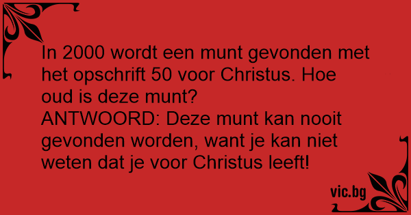 In 2000 wordt een munt gevonden met het opschrift 50 voor Christus. Ное oud is deze munt?