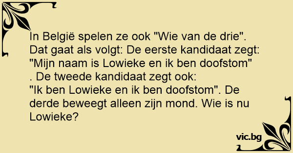 "Ik ben Lowieke en ik ben doofstom". De derde beweegt alleen zijn mond. Wie is nu Lowieke?