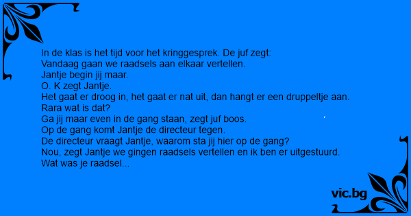 Nou, zegt Jantje we gingen raadsels vertellen en ik ben er uitgestuurd.