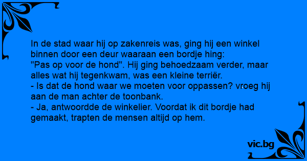 - Ja, antwoordde de winkelier. Voordat ik dit bordje had gemaakt, trapten de mensen altijd op hem.