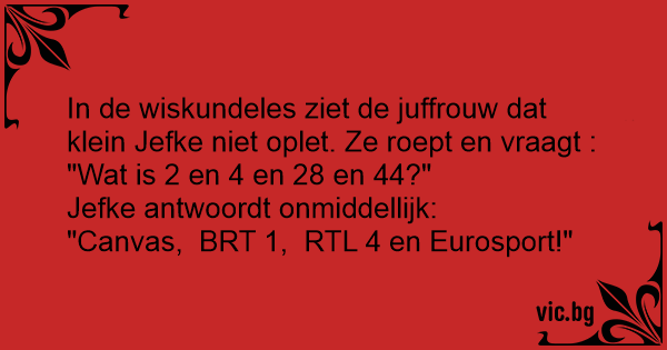 In de wiskundeles ziet de juffrouw dat klein Jefke niet oplet. Ze roept en vraagt :