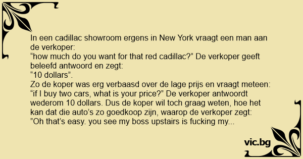 “how much do you want for that red cadillac?” De verkoper geeft beleefd antwoord en zegt: