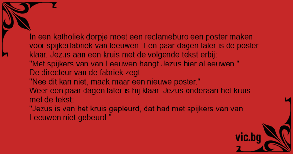 "Met spijkers van van Leeuwen hangt Jezus hier al eeuwen."