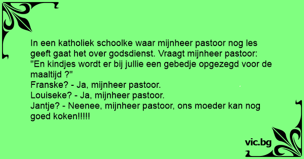 In een katholiek schoolke waar mijnheer pastoor nog les geeft gaat het over godsdienst. Vraagt mijnheer pastoor: