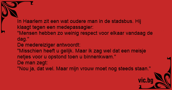 In Haarlem zit een wat oudere man in de stadsbus. Hij klaagt tegen een medepassagier: