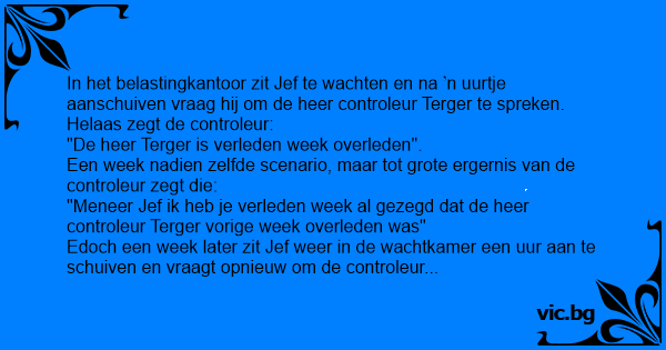 "Meneer Jef ik heb je verleden week al gezegd dat de heer controleur Terger vorige week overleden was"