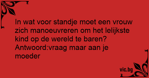 In wat voor standje moet een vrouw zich manoeuvreren om het lelijkste kind op de wereld te baren?