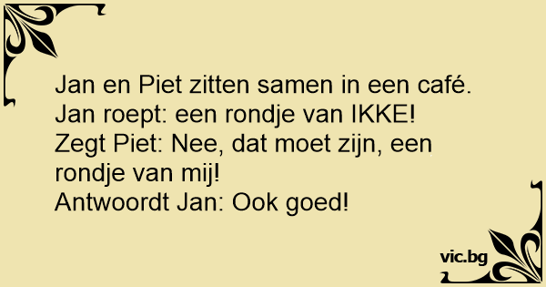 Zegt Piet: Nee, dat moet zijn, een rondje van mij!