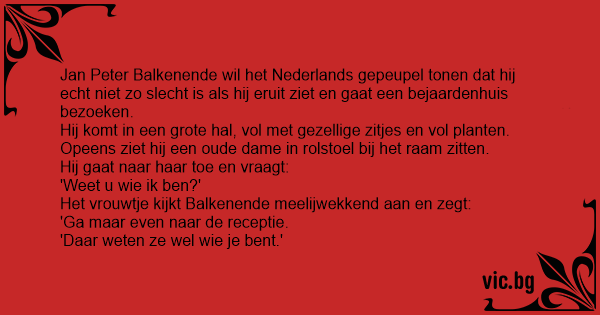 Jan Peter Balkenende wil het Nederlands gepeupel tonen dat hij echt niet zo slecht is als hij eruit ziet en gaat een bejaardenhuis bezoeken.