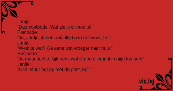 “Ja, Jantje, ik ben ook altijd aan het werk, he.”