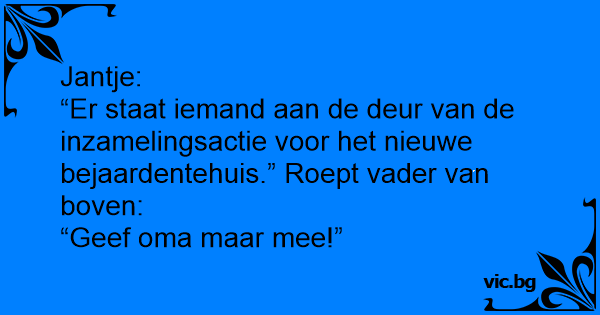 “Er staat iemand aan de deur van de inzamelingsactie voor het nieuwe bejaardentehuis.” Roept vader van boven: