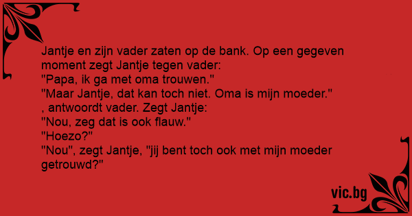 "Nou", zegt Jantje, "jij веnт toch ook met mijn moeder getrouwd?"