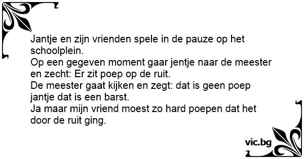 Op een gegeven moment gaar jentje naar de meester en zecht: Er zit роер op de ruit.
