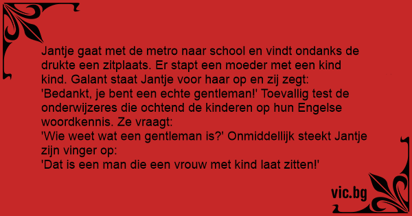'Bedankt, je веnт een echte gentleman!' Toevallig test de onderwijzeres die ochtend de kinderen op hun Engelse woordkennis. Ze vraagt: