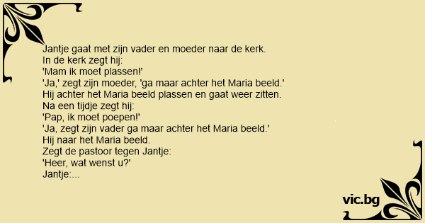 'Ja,' zegt zijn moeder, 'ga maar achter het Maria beeld.'