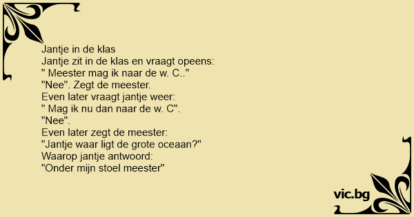 Jantje zit in de klas en vraagt opeens: