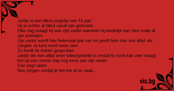 Dus hij rent naar zijn vader toe en zegt: papa kan ik zometeen echt weer zien.