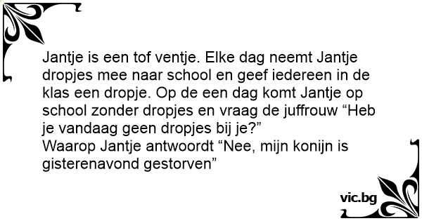 Waarop Jantje antwoordt “Nee, mijn konijn is gisterenavond gestorven”