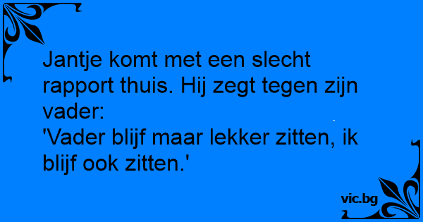 Jantje komt met een slecht rapport thuis. Hij zegt tegen zijn vader:
