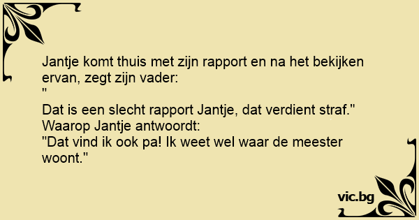 Jantje komt thuis met zijn rapport en na het bekijken ervan, zegt zijn vader: