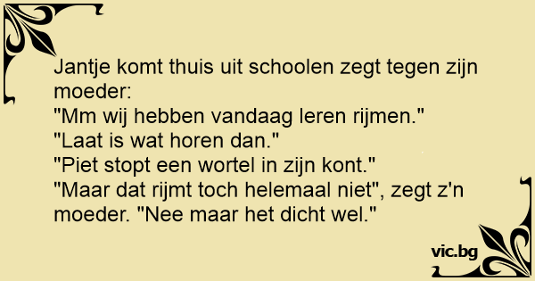 Jantje komt thuis uit schoolen zegt tegen zijn moeder: