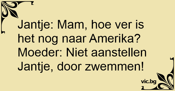 Jantje tegen zijn vader: "Maar papa, ik wil helemaal niet naar Engeland op vakantie!!" Vader: "Bek houden en doorzwemmen."