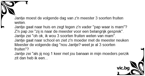 Meester de volgende dag ''nou Jantje? weet je al 3 soorten fruiten''?