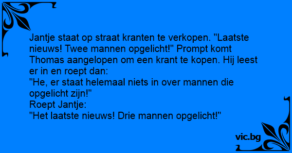 Jantje staat op straat kranten te verkopen. "Laatste nieuws! Twee mannen opgelicht!" Prompt komt Thomas aangelopen om een krant te kopen. Hij leest er in en roept dan: